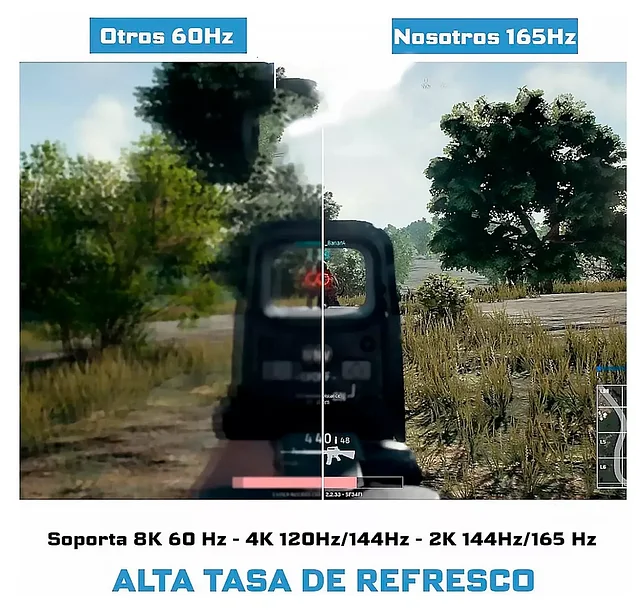 Velocidad Superior para Gaming: Olvídate del tearing. Compatible con tasas de refresco ultrarrápidas como 4K a 144Hz/120Hz y 2K a 165Hz/144Hz. Disfruta de una jugabilidad fluida y sin lag.