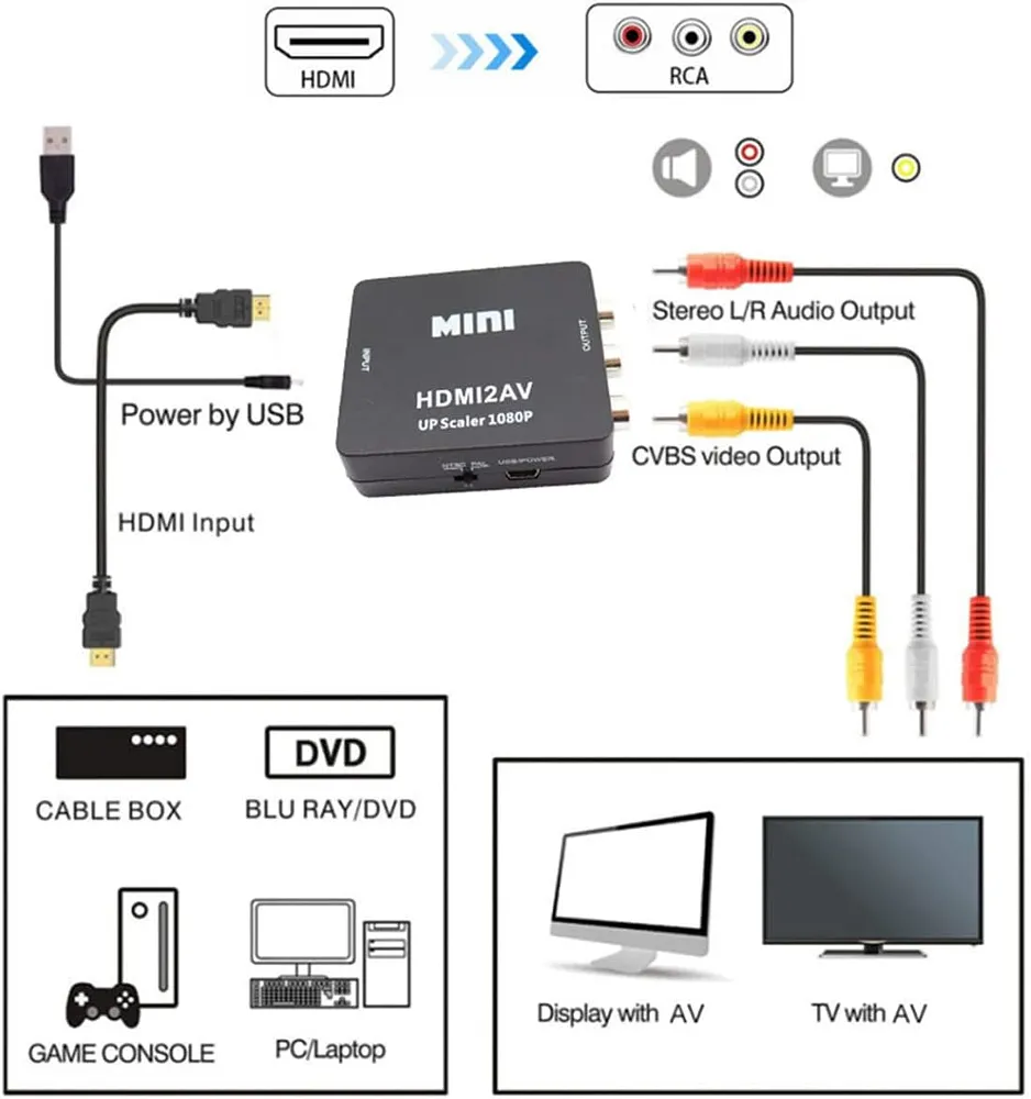 🔄 Detección Automática: El convertidor detecta automáticamente la señal de PC entrante y la ajusta al estándar de TV NTSC o PAL. ¡Conecta y reproduce sin configuraciones manuales!