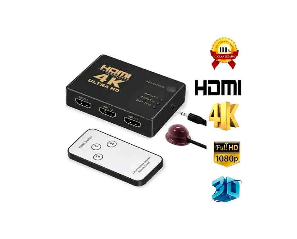 ¡Basta de cambiar cables! Conecta hasta 3 dispositivos HDMI (consolas, reproductores, TV Box) a un solo puerto de tu televisor y cambia entre ellos al instante con un solo botón o desde el control remoto. Disfruta de una experiencia fluida con la máxima calidad de imagen.