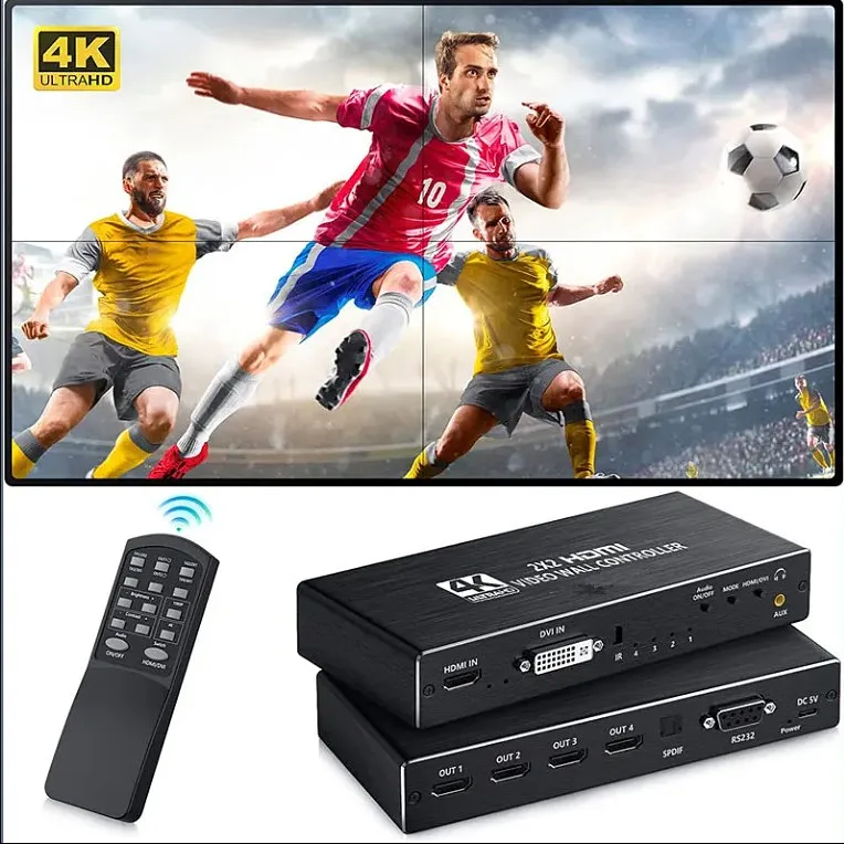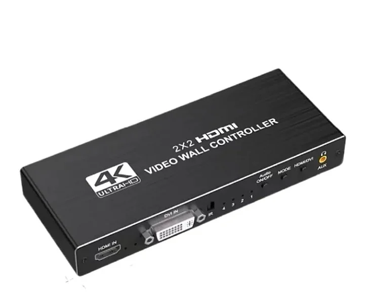 El controlador de pared para TV 2x2 admite entradas HD de 1 vía y 4 salidas HD, con la función principal de dividir una señal HD completa en 4 bloques y asignarla a 4 unidades de visualización de vídeo (como una unidad de retroproyección, un televisor LCD, etc.), y se completa con 4 unidades de visualización de vídeo