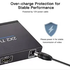 Se ha adoptado un chip independiente para garantizar un rendimiento estable del dispositivo, sin retrasos ni distorsiones. Admite 1 entrada HD y 4 salidas HD, y admite una resolución de 1920 x 1080P a 60 Hz, para ofrecer una pantalla de alta calidad, clara y delicada.